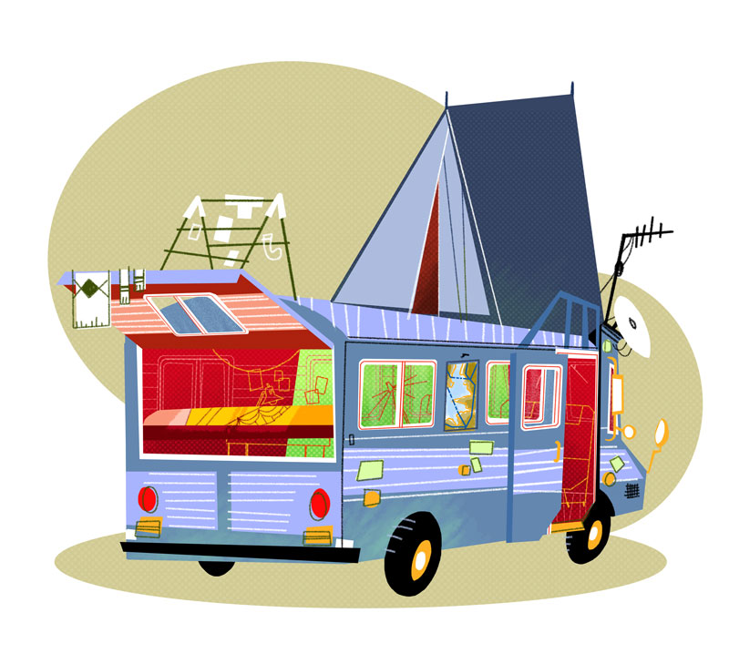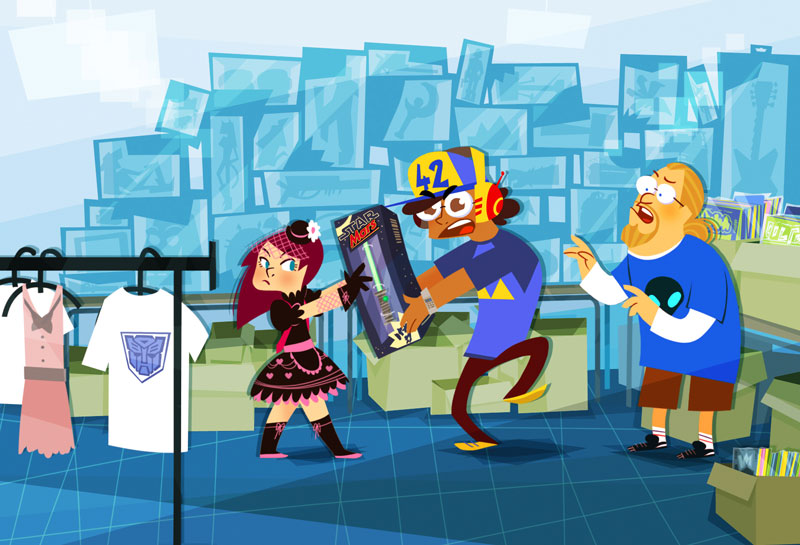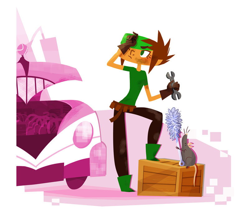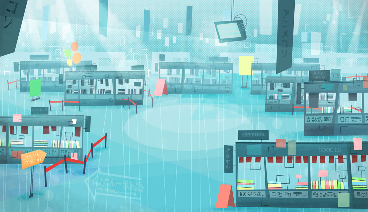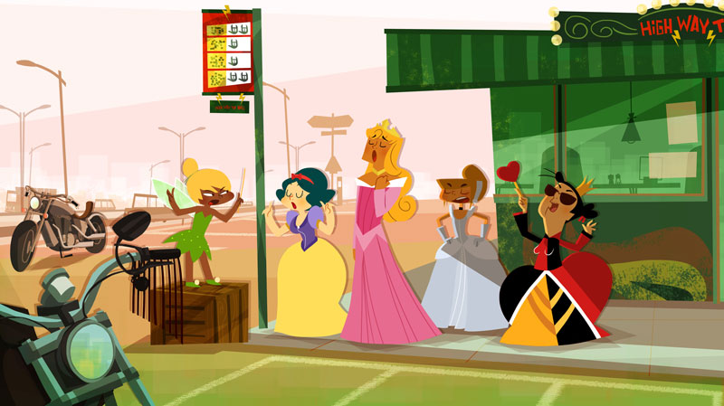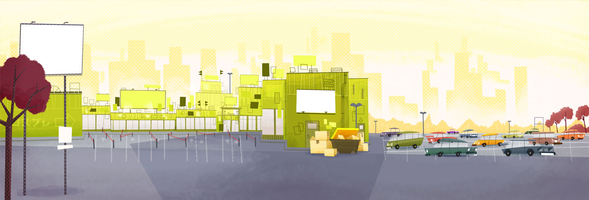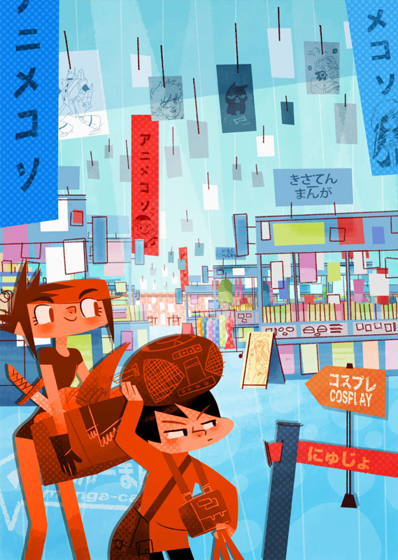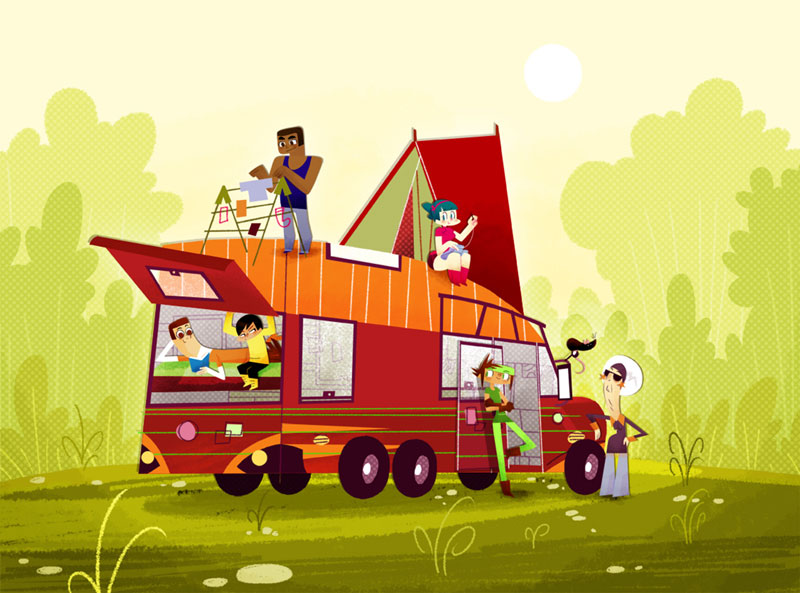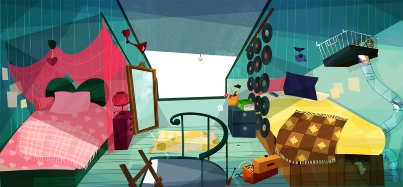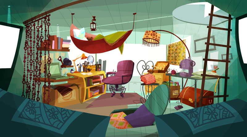My researches for the backgrounds of Copy Cut, an animated series that I have written and drawn with Ludivine Marques-Verissimo and produced by Normaal animation. Copy cut team is a teenage group of cosplayers who travels around the world, driven by Babouze, the vintage Grandma and her vintage SupaVan. This art work is dated as of 2008, before the pilot directed by Zebe. I was lead Background designer / Layout artist on this pilot.